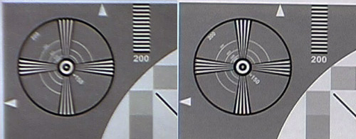 Onko XM2 terävä? | On. Sehän riippuu kuvaustavasta, aiheesta ja monesta muusta asiasta, mutta kyllä XM2 pärjää tässä suhteessa. Nythän käyttäjä voi itse muuttaa terävöitystä (ääriviivojen terävyyttä) melko laajalla alueella. Tuota täytyy tutkia ajan kanssa ja isosta monitorista. Toistaiseksi olen pitänyt säätimen pois päältä. En ole innostunut testitaulujen kuvaamiseen. Laboratorio-olosuhteissa niillä voi saada eroja eri kameroiden välille, mutta sekin kertoo vain paikallaan pysyvän mustavalkoisen kohteen eroista. Kotioloissa niiden käyttö on vaikeata vaikkapa siksi, että kameroiden etsimet eivät näytä todellista kuva-alaa. TV:ssä näkyvän alueen ne kyllä esittävät melko luotettavasti. Nyt kuitenkin kaivoin testitaulun netistä nähdäkseni, onko edistystä tapahtunut viidessä vuodessa. On, onneksi on. Canonin terävyys on selvästi parempi kuin Panasonicin jos taulua kuvataan huonevalaistuksessa tai ikkunan lähistöllä. Erityisesti reunat ovat paremmat. Tässä vasemmalla vanhan kameran, oikealla uuden kuva kohtalaisen valoisassa huoneessa kuvattuna. Kuvassa osa ruudun vasemmasta ylänurkasta. Kirkkaassa valossa erot tasaantuvat. Siellä kaikki kolmikennoiset ilmeisesti lähestyvät jo DV-nauhan maksimierottelukykyä, mutta kyllä XM2:n kuvasta näkee, että kehitystä on tapahtunut. Kuva ei näytä terävöitetyltä, mutta on terävää. Itse asiassa suurimmat erot ovatkin aivan muualla kuin viivojen erottelussa. Canon toistaa terävänä myös tasaiset pinnat ja pienet sävyerot ja sehän se on varsinaista erottelukykyä. Vasemmalla taas vanhan Panasonicin, oikealla uuden Canonin kuva, nyt 2000 luksin valaistuksessa. Molemmat ylittävät 500 viivan erottelukyvyn, mutta silmin havaittavaa eroa on. Kuva on mustesuihkulla tulostettu ja tuo epätasaisuus harmaissa pinnoissa on oikeasti olemassa. Vain Canon pystyi sen toistamaan. Älkää nyt kuitenkaan tehkö liian pitkälle meneviä johtopäätöksiä näistä epätieteellisistä mittauksista. Jos vertailussa olisi 2 samanhintaista juuri markkinoille tulevaa kameraa, vertailu pitäisi tehdä tarkemmin. Kameroiden kohdistus tauluun, tarkennus, balansointi, aukon säätö, sähköisen terävöityksen aste jne., monia asioita pitäisi tehdä hyvin huolellisesti saadakseen todella luotettavan tuloksen. Sittenkin jäisi vielä jossittelun varaa tulosten tulkinnassa, jos haluaisi ilmoittaa selvän lukeman kameroiden piirtokyvystä. Jätän tämän ammatilaboratorioille, enkä niidenkään tuloksia juuri arvosta totuutena. Kameran suorituskyky punnitaan aivan muualla kuin mustavalkoisia paikallaan pysyviä viivoja kuvatessa.