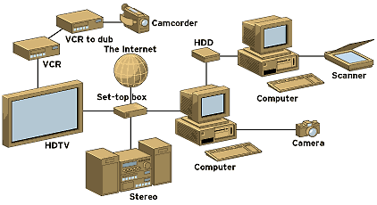 Liitännällä voi kytkeä 63 laitetta peräkkäin. Myös kaksi tietokonetta voi käyttää yhteisiä lisälaitteita. Kodin elektroniikka on tulossa IEEE-1394 liitännän pariin. Dataa siirretään paketteina 400 megabitin sekuntinopeudella. Myös laitteet voivat keskustella keskenään ilman tietokoneen välitystä. Laitteissa pitäisi olla kaksi FireWire-porttia, jotta ketjutus sujuu. DV-kameroihin mahtuu vain yksi, joten ne on sijoitettava ketjun päähän. Kaapeli on ohut ja notkea, 6-napainen (tai 4 jos käyttöjännitettä ei kuljeteta sitä pitkin), maksimipituus on 4.5 metriä yhdelle kaapelille. Sen voi kytkeä virrat päällä, vaikkakin vanhemmat Win-käyttöjärjestelmät eivät silloin aina tunnista laitteita. Vielä nopeampia yhteyksiä ja pidempiä kaapeleita kehitellään. Tulevaisuuden liitinvalikoima on alarivissä. Kuvalainaukset ovat PC-World-lehdestä. DV-liitäntä = FireWire = IEEE 1394 = iLink ------------------------------------------------------- |