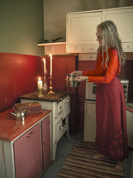 Triennaalin teemaa olen tulkinnut hyvin itsekeskeisesti ja sananmukaisesti. Kuvauspaikka on oma kotini pihoineen ja pihavarastoineen (vanha mökki), joissa viihdyn ”kuin kotona”.